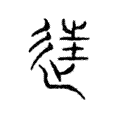 )」為聲符。彳為道路,引申為行走、前進,作為形符,表示義與行走有關;?為草木叢生的樣子,引申而有趨進的意思,於此作為示義的聲符,表示音讀。戰國楚系文字或作「